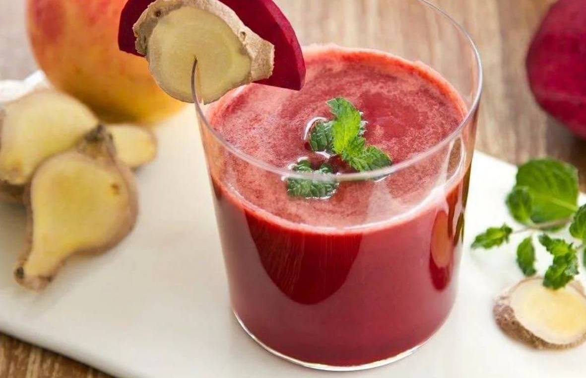 Jabłka, marchew, seler i buraki obrać, pokroić na mniejsze kawałki, wrzucić do sokowirówki i wycisnąć sok. Osobno wycisnąć sok z imbiru i cytryny i dodać do soku. Na koniec dodaj do soku miód.